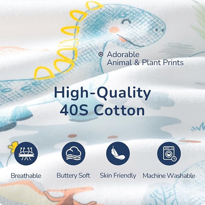 Baby Sleep Sack 18-24 Months, Cotton Detachable Long Sleeve Sleep Sack, 1.0 Tog Toddler Sleeping Sack with Temperature Strips, 2-Way Zipper Wearable Blankets for Newborns, Dinosaur
