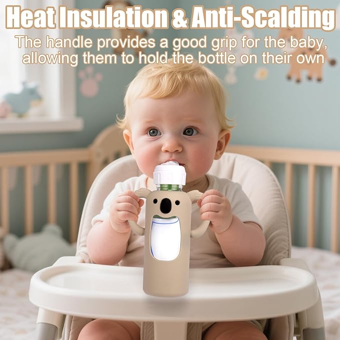 - Thermal Insulation & Maintain Liquid Temperature:Silicone bottle protectors have good heat insulation properties, which can effectively prevent the hot water in the bottle from scalding the baby's little hands or skin. Even when the bottle is filled with high temperature liquid, the sleeve can keep the external temperature moderate, convenient for parents and babies to use safely