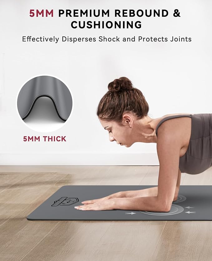 - 5mm Cushioning for Joint Protection:The thick 5mm construction absorbs impact during planks, jumps, and kneeling, reducing strain on knees, wrists, and hips while providing a stable base for balance-focused exercises on this thick yoga mat