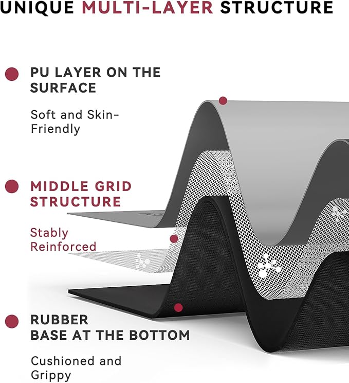 - Dual-Layer PU Top & Rubber Bottom:Textured PU surface delivers superior sweat-resistant grip to prevent slips, paired with a high-rebound rubber bottom for enhanced shock absorption and stability—ensuring smooth pose transitions at any intensity
