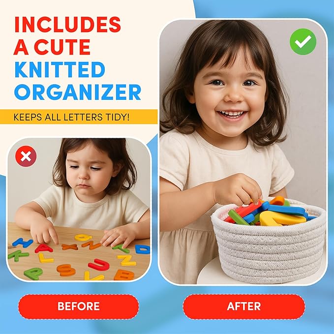 - Great Learning Partner: Encourage 4-in-1 early development: Letter recognition, spelling practice, color sorting, and coordination skills! Children learn ABCs through tactile play – building words on the fridge or sorting colors. Vibrant hues accelerate color learning, ideal for interactive sessions with refrigerators and whiteboards