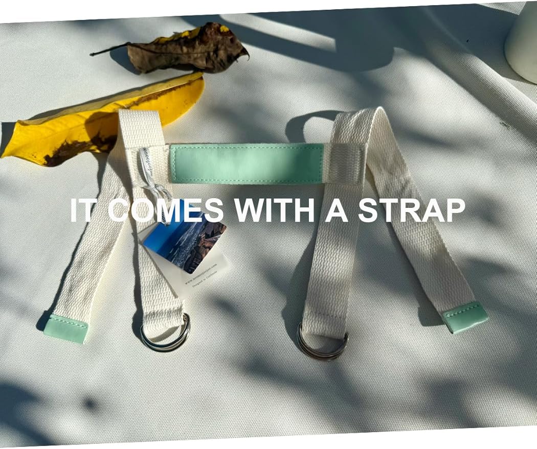 - Includes: 1 canvas mat, faux leather handle, and webbing strap