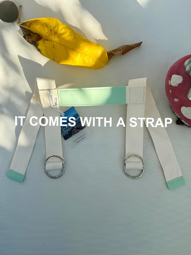 - Includes: 1 white canvas mat, faux leather handle, and webbing strap