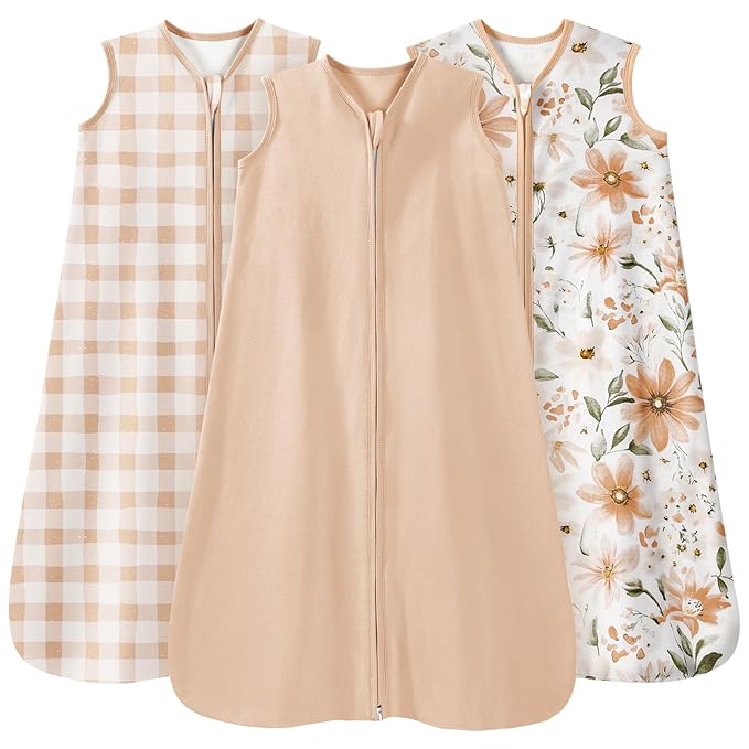 Baby Sleep Sack 18-24 Months 3 Pack 100% Cotton Lightweight 0.5 TOG Wearable Blanket Baby Sleep Bag with 2-Way Zipper for Newborn Infant Orange Flowers & Plaid