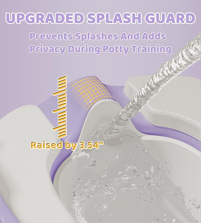 - 【Splash Guard & Urinal Design for Boys】Includes an extended splash guard with a 2.8-inch deep arc recess to prevent spills, ideal for boys during potty training. The urinal-style front makes it easier to keep things tidy and mess-free, promoting better hygiene and easier cleanup.