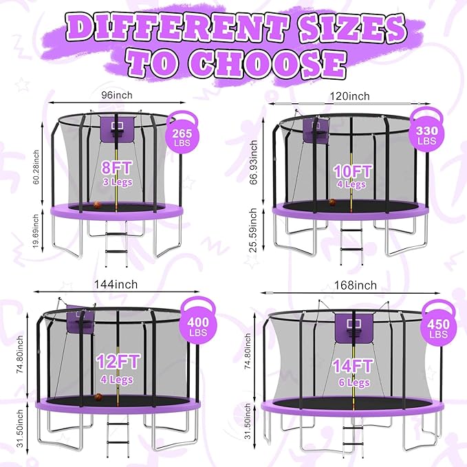 - Great Choice for Family Outdoor Entertainment: More than just a backyard trampoline, this all-age outdoor trampoline creates unforgettable family moments. Bring happiness to both adults and children. Our product is designed to deliver endless fun and exceptional value—making it the trusted choice for a safe, interactive, and durable outdoor play experience