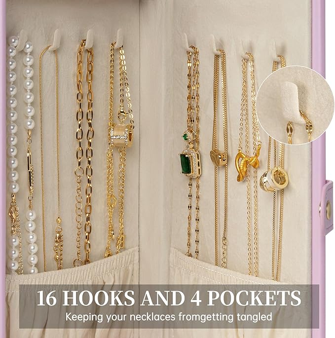 - Large Mirror Grab-and-Go Handle, This mirrored jewelry box comes with a built-in large mirror on top lid, making it easier to dress yourself. The lid has a ribbon attached to keep it from falling back. With a grab-and-go handle, convenient to carry around; delicate buckle for one-hand easy opening, easy to use and saving your time