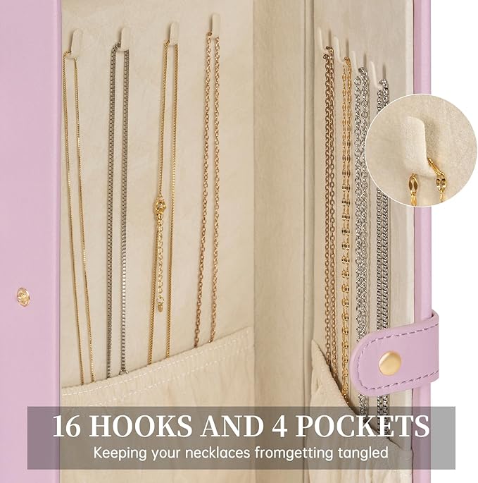 - Large Mirror Grab-and-Go Handle, This mirrored jewelry box comes with a built-in large mirror on top lid, making it easier to dress yourself. The lid has a ribbon attached to keep it from falling back. With a grab-and-go handle, convenient to carry around; delicate buckle for one-hand easy opening, easy to use and saving your time