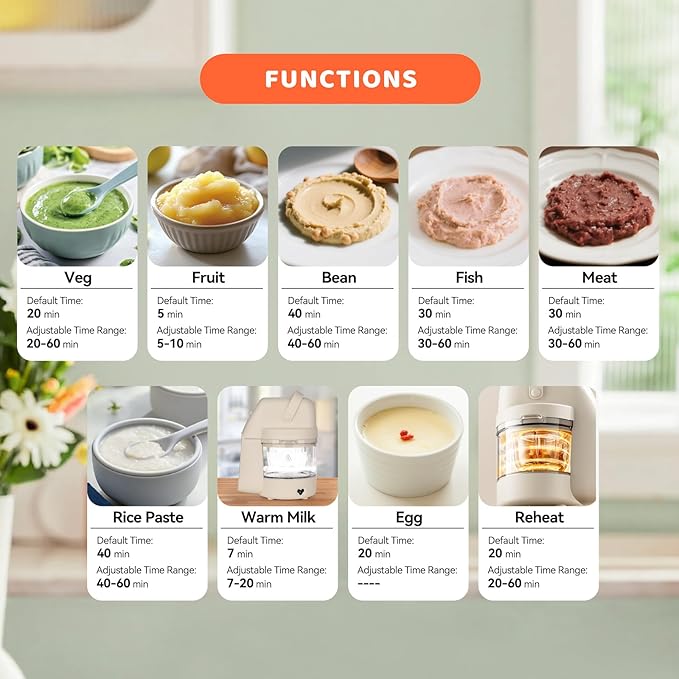 - 【POWERFUL STEAMING & BLENDING】 – 450W heating for fast cooking, plus integrated stirring. Schedule meals with the 24-hour timer so you can spend more time with your baby.
