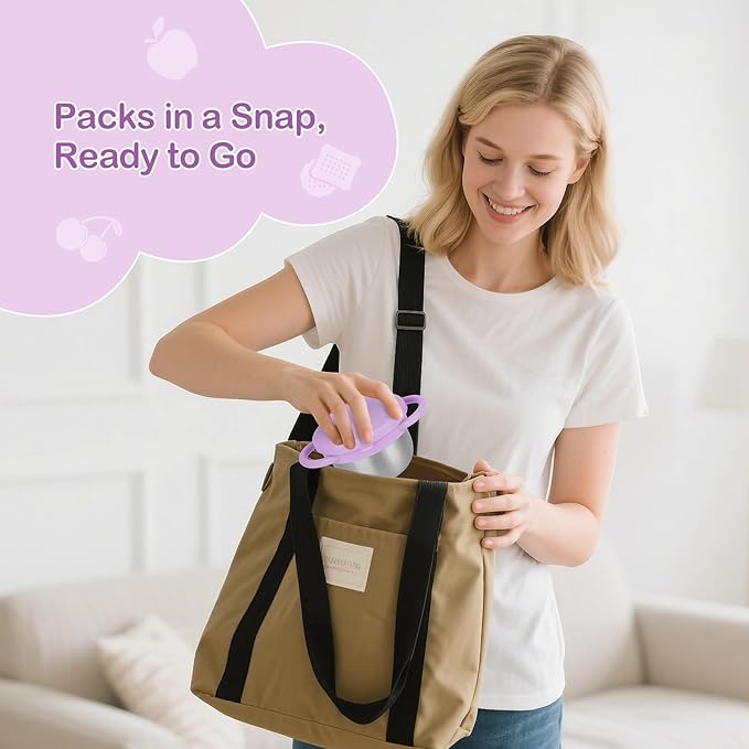 - Dual Easy-Grip Handles: Our snack cup features two soft, ergonomic handles that are lightweight and compact, allowing little hands to grip them securely and comfortably. Whether at home, in the car, or during your baby's adventures exploring the world, the easy-grip design helps develop hand-eye coordination, reduces slipping, and gradually fosters the good habit of independent eating.