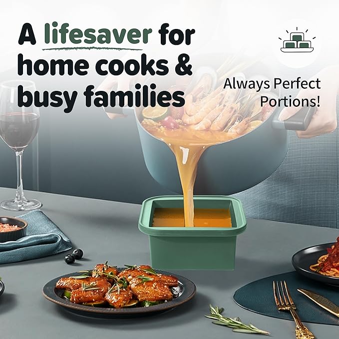- VERSATILE & CONVENIENT FOR ANY KITCHEN TASK Use them for: Freezing homemade soups, sauces, and broths Storing baby food and portioning snacks Baking (up to 415°F without the lid) Making ice cubes, chocolates, and more! Dishwasher-safe for quick and easy cleaning, they save you time in the kitchen.