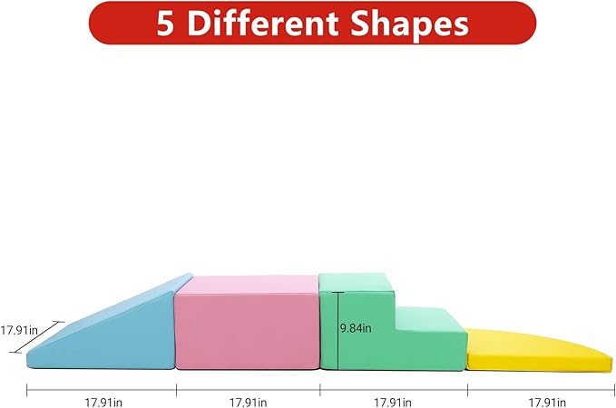 - Safe Materials: Made of child-safe materials, the 4-piece baby foam play set enables your toddler to safely learn to climb, crawl, and slide. It is very suitable for creating a safe play area for toddlers