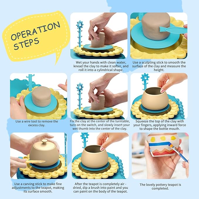 - 【HAND-EYE COORDINATION TRAINING】Perfectly integrates pottery making fun with education! Through fun artistic activities (including rotating ceramics), effectively exercise the fine motor skills, hand-eye coordination, color cognition and concentration of children aged 8-12 years old.