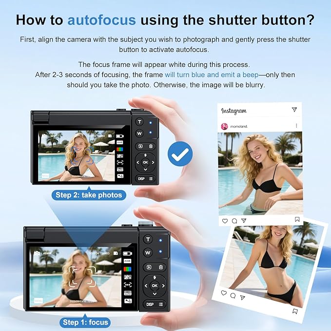 - 【180° Digital Camera with Flip Screen】Our 4k camera for photography offers a 3.0-inch IPS 180° flip screen, ideal for selfie enthusiasts and vlogging creation. Designed for travel and everyday use, this compact travel camera for pictures is built to last. Its small size and durable construction make it a reliable companion for capturing memories on the go.