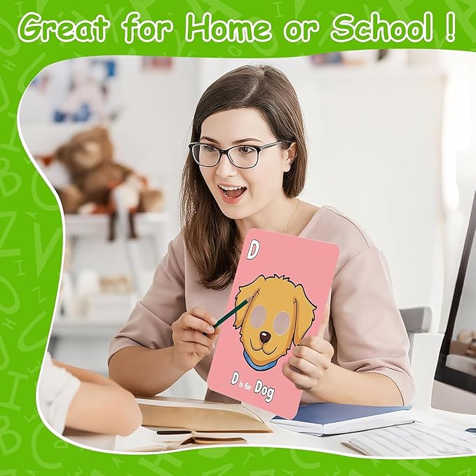 - 【Learn Through Interactive】 Each card is specially punched, and people can play by aligning their eyes with the round holes and transforming into 26 fun cartoon characters. In playing, everyone can interact with their partners and achieve immersive learning.
