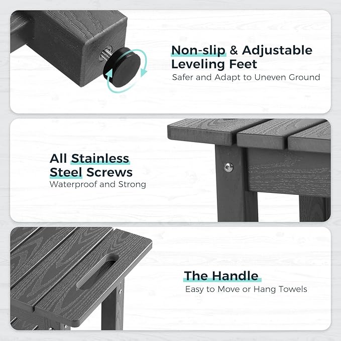 - 【100% Waterproof】 The shower bench is made of HIPS (poly lumber), with 304 stainless screws, which is highly water proof, never rot and moldy. Easy to clean, just wipe it with a towel.