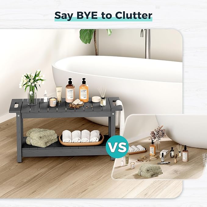 35" Shower Bench, Waterproof Poly Lumber Shower Stool for Shaving Legs, Shower Chair Seat Holds up to 400lbs, Bathroom Bench for Inside Shower, Non-Slip (Grey)